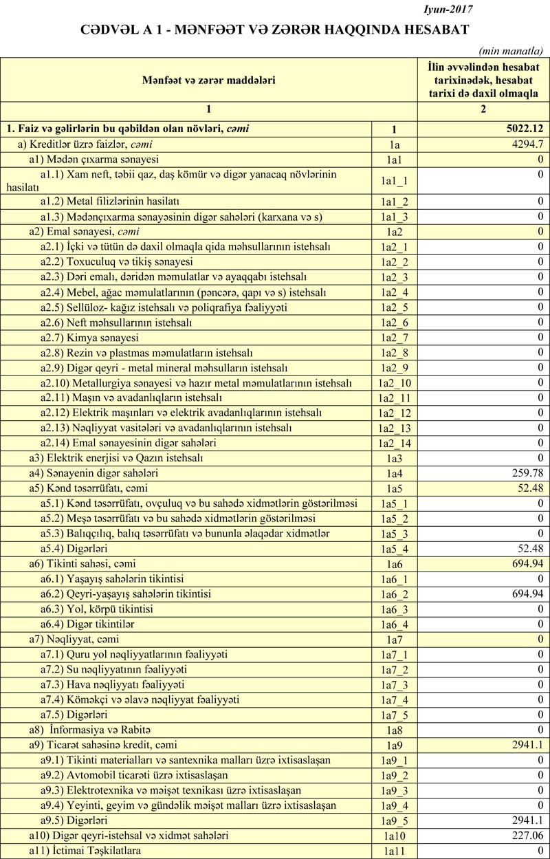 “Ziraat Bank Azərbaycan” ASC 2017-ci ilin 1-ci yarısını 1 milyon 744 min manat xalis mənfəət ilə başa vurub. Bank 2016-cı ilin birinci yarısında bu ildəkindən 2 dəfə çox - 3 milyon 495 min manat xalis mənfəət əldə etmişdi.