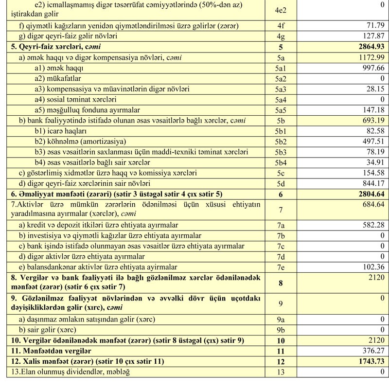 Ötən ilin sonu ilə müqayisədə Bankın kredit portfeli 54,7 milyon manatdan 65,8 milyon manata, depozit portfeli isə 37,9 milyon manatdan 47,3 milyon manata qalxıb.
