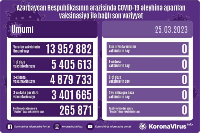 Azərbaycanda son sutkada koronavirus (COVID-19) əleyhinə vaksin vurulmayıb.