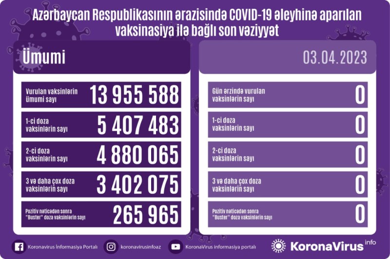Azərbaycanda son sutkada koronavirus (COVID-19) əleyhinə peyvənd aparılmayıb.