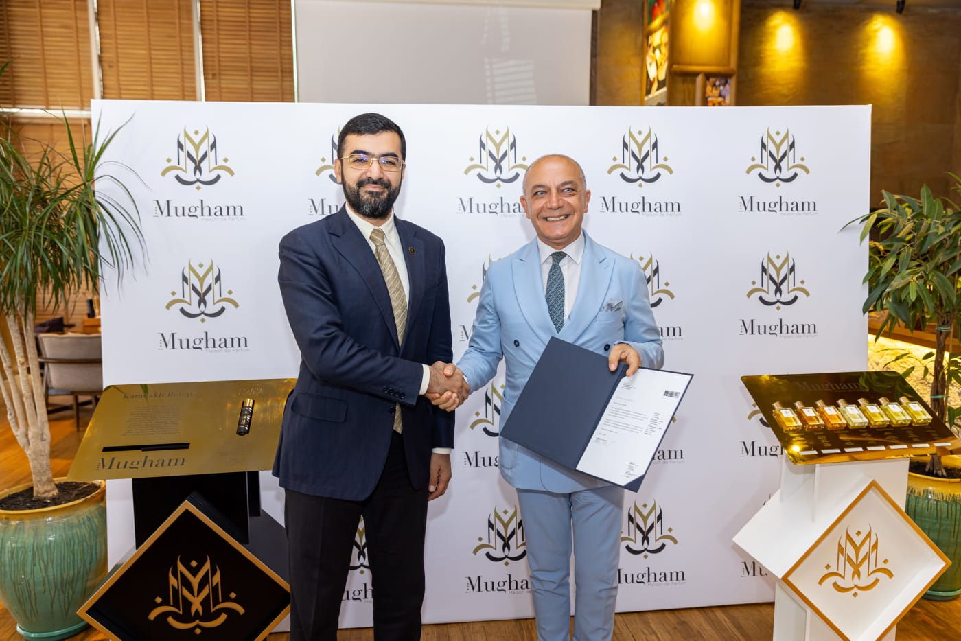 “Mugham” ətirləri nadir və davamlı xammaldan hazırlanaraq satışa çıxarılır. Fransada istehsal edilən “Mugham” parfüm brendinin “Karabakh Bouquet -1752” ətri ilə yanaşı, muğamın 7 növü - "Rast", "Shur", "Segah", "Chahargah", "Bayati -Shiraz", "Shushtar" və "Humayun"un adını daşıyan çeşidləri də var.