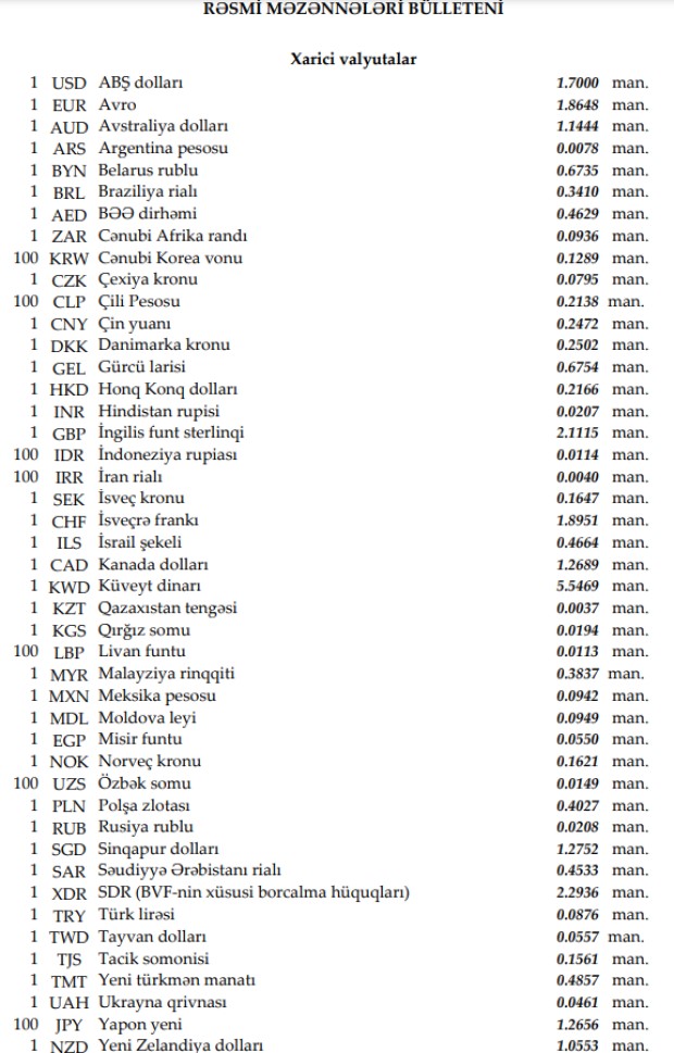 Rəsmi məzənnələr açıqlandı