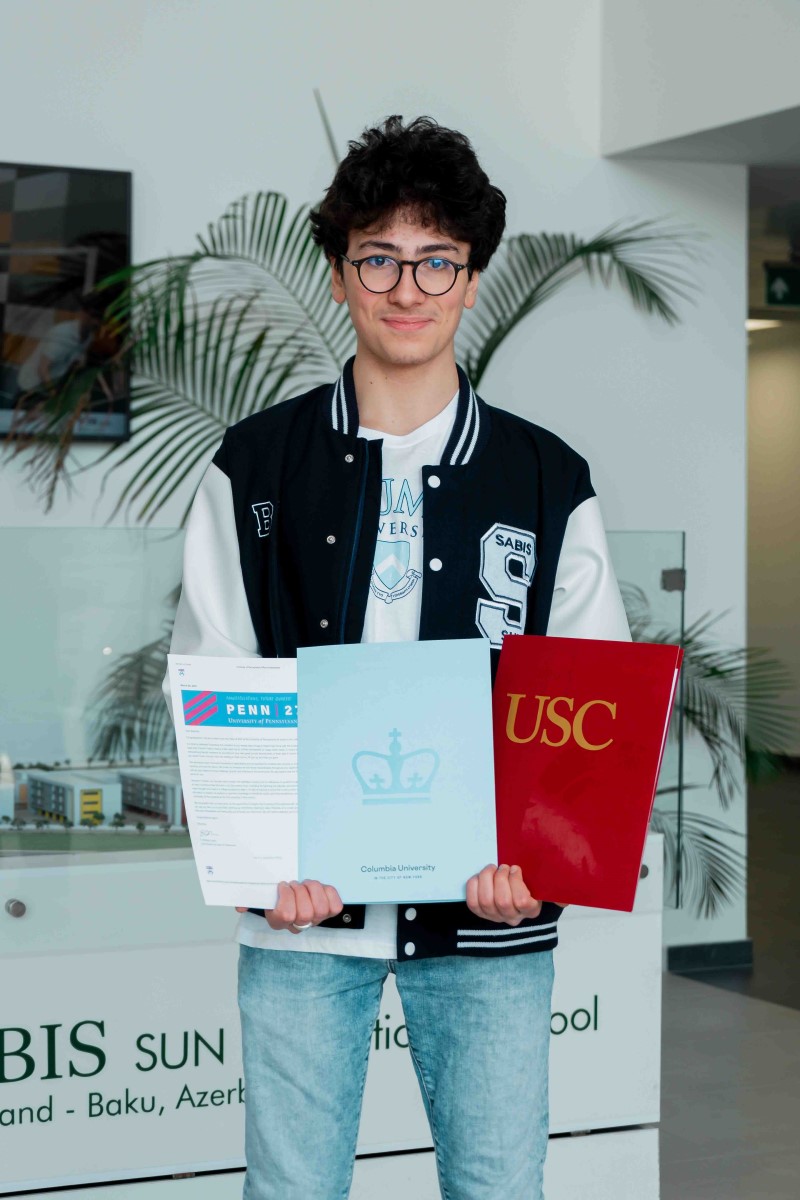 BATUHAN YELTEKİN(®) Azərbaycanda, Bakı şəhərində yerləşən SABIS® SUN Beynəlxalq Məktəbinin (SABIS® SUN) 12-ci sinif şagirdi Batuhan Yeltekin Kolumbiya Universiteti və Pensilvaniya Universiteti kimi iki Ivy League universitetləri də daxil olmaqla dünyanın ən məşhur universitetlərindən qəbul məktubları alıb.