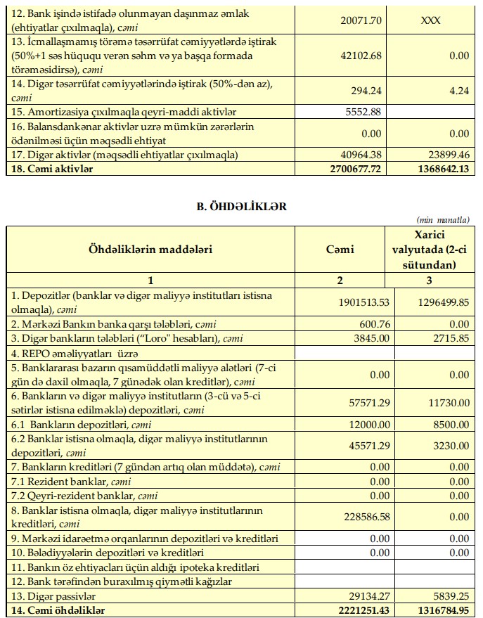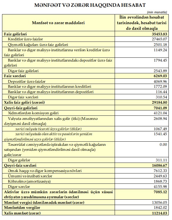 Azərbaycanda 4-cü böyük bankın MALİYYƏ VƏZİYYƏTİ AÇIQLANDI