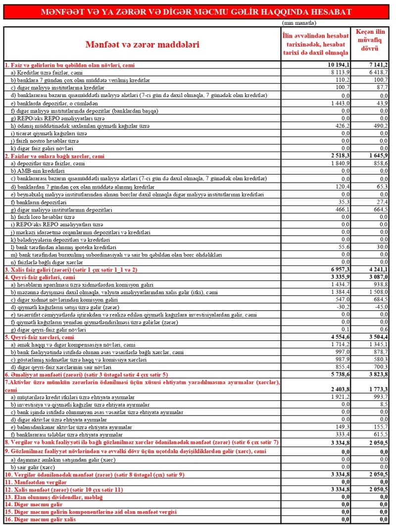Bank ilk rübü 3 milyon 335 min manat xalis mənfəət ilə başa vurub."Ziraat Bank Azərbaycan" ASC 2023-cü ilin 1-ci rübünə dair maliyyə hesabatlarını açıqlayıb.