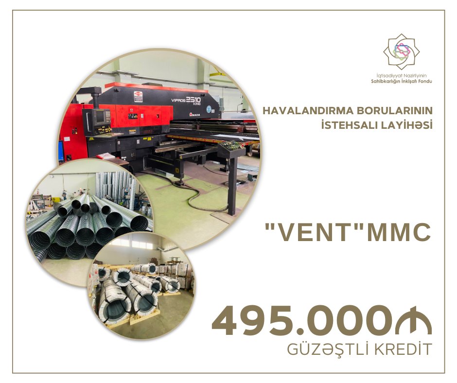 “Vent” MMC şirkəti havalandırma borularının istehsalı layihəsi üzrə güzəştli kredit alıb.