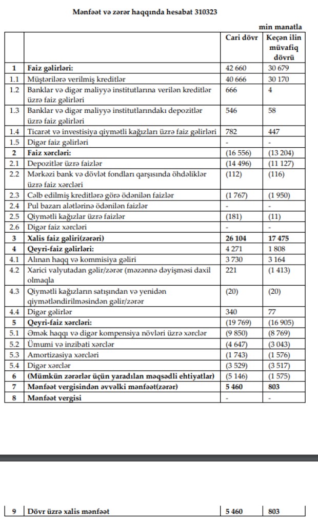 "AccessBank"ın 2023-cü ilin ilk rübündə 10 milyon 606 min manat əməliyyat mənfəətindən 5 milyon 146 min manat mümkün zərərlər üçün yaradılan məqsədli ehtiyatlara ayırıb. Bank 2022-ci ilin ilk rübündə 2 milyon 378 min manat əməliyyat mənfəətindən 1 milyon 575 min manat mümkün zərərlər üçün yaradılan məqsədli ehtiyatlara ayırmışdı. İlk rübdə Bankın əməliyyat mənfəəti 4,5 dəfə artıb. Əgər ehtiyata ayırma 3,3 dəfə artmasaydı, "AccessBank"ın xalis mənfəəti daha böyük məbləğdə olardı.