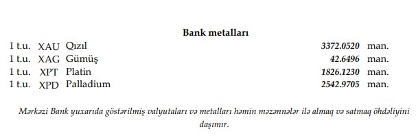 Rəsmi məzənnələr açıqlandı