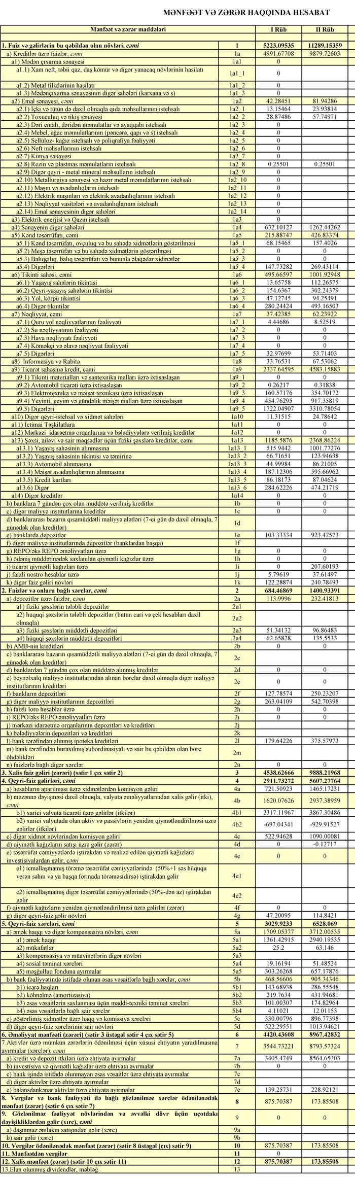 Ehtiyatlara ayırmadan sonra Bankın 173.8 min manat xalis mənfəti qalıb.