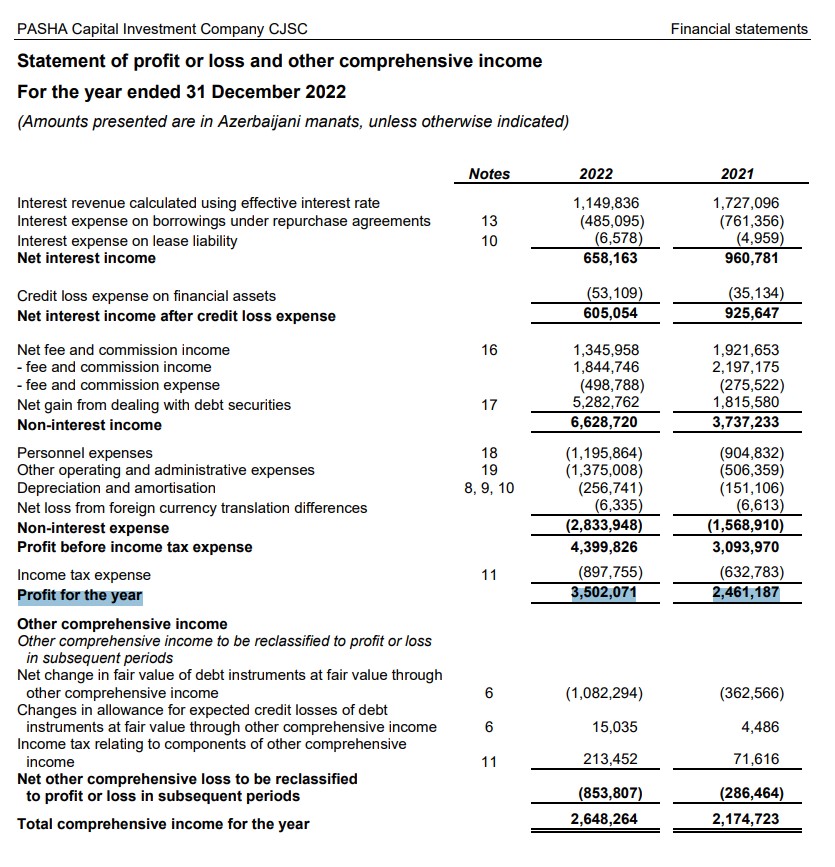 Marja.az xəbər verir ki, "PAŞA Kapital"ın qiymətli kağızları ilə əməliyyatlar üzrə xalis gəliri 2021-ci ildə 1 milyon 815 min manat ikən, 2022-ci ildə 5 milyon 283 min manat təşkil edib (təxminən 3 dəfə artıb).