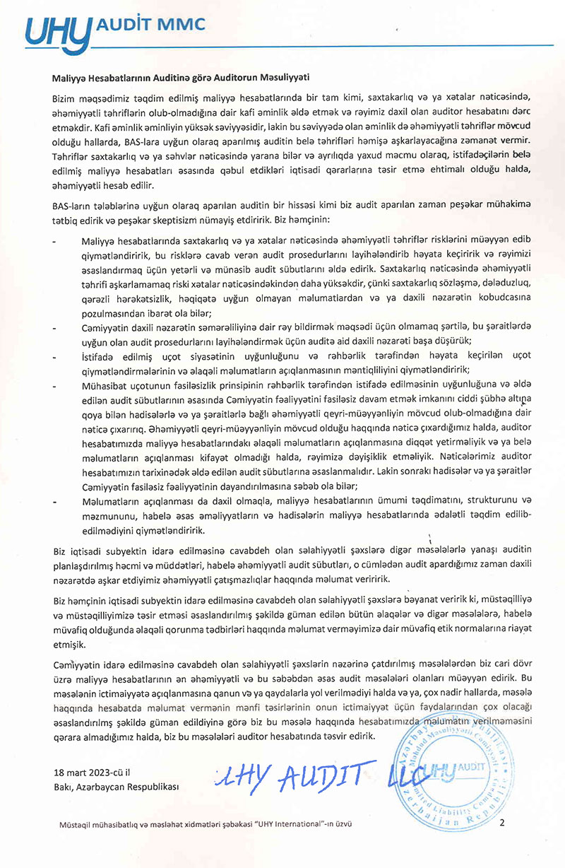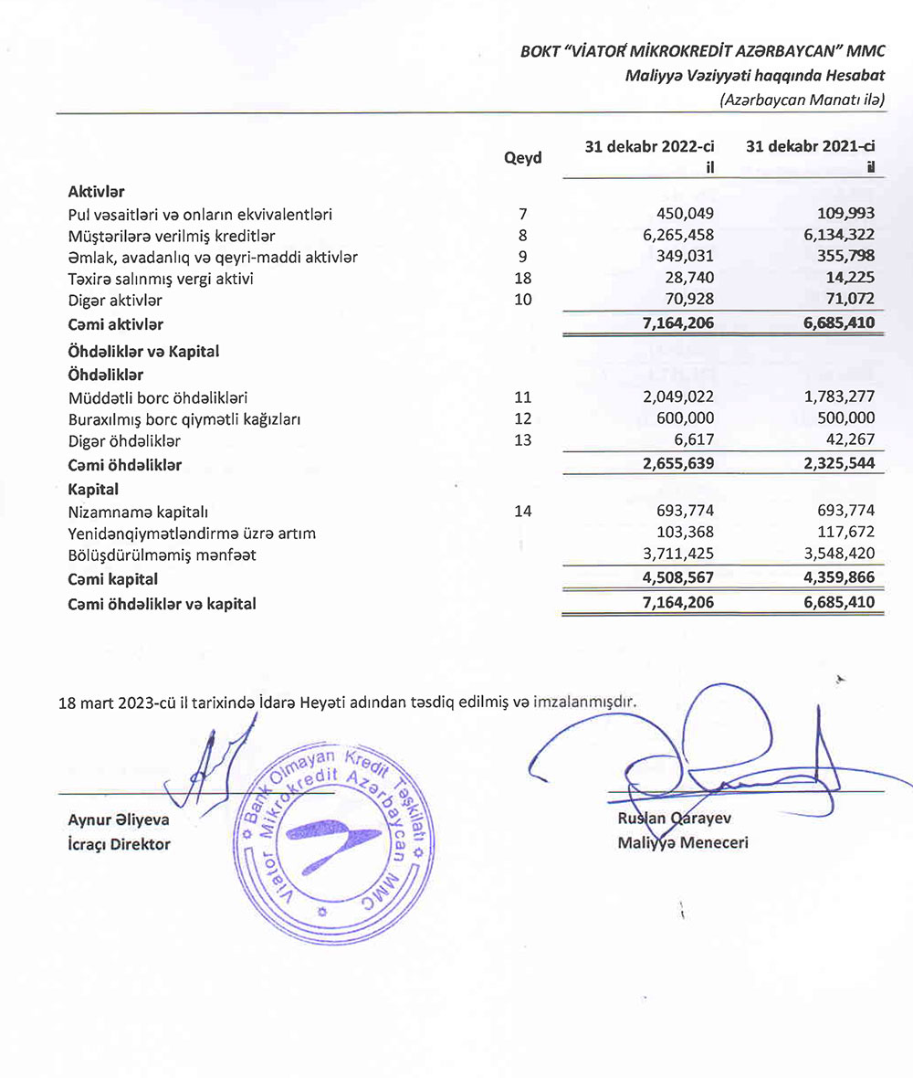 BOKT "Viator Mikrokredit Azərbaycan" MMC-nin 2022-ci ilin sonuna olan maliyyə və audit hesabatı ilə buradan tanış ola bilərsiniz.