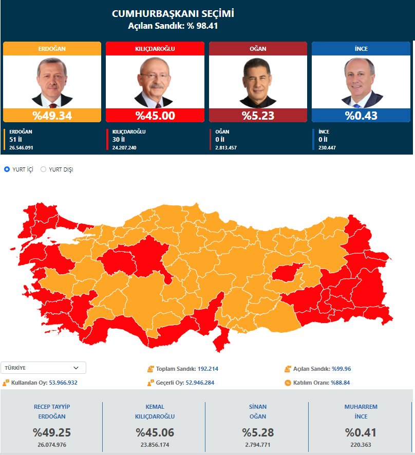 Bütün böhtan və təhqirlərə baxmayaraq, Ərdoğan gözlədiyi nəticəni ala bilmədi. Heç kim oldu-bitdiyə həvəslənməsin. Seçkidə balkonda qalib gəlinmir. Məlumatlar hazırda gəlməkdə davam edir. Millətimiz ikinci tur deyirsə, başımızın üstündədir. Bu seçkidə mütləq ikinci turda qalib gələcəyik. Bunu hamı görəcək.