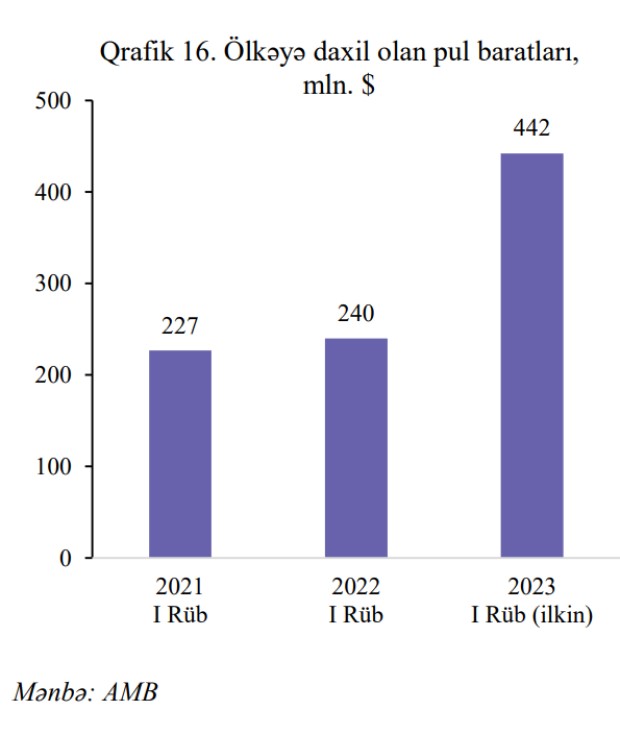 Qeyd edək ki, 2023-cü ilin 1-ci rübü ərzində Azərbaycana daxil olan pul baratlarının həcmi 240 milyon ABŞ dolları təşkil etmişdi.