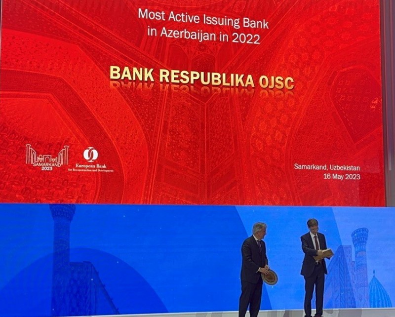 EBRD “Bank Respublika”nı “Azərbaycanda ən fəal emitent-bank” elan edib!(®) Bank Respublika - Avropa Yenidənqurma və İnkişaf Bankının (EBRD) tərəfindən Ticarətə Yardım Proqramı (The Trade Facilitation Programme, TFP) çərçivəsində 2022-ci il üzrə ticarətin maliyyələşdirilməsi sahəsində “Azərbaycanda ən fəal emitent-bank” adına layiq görülüb.