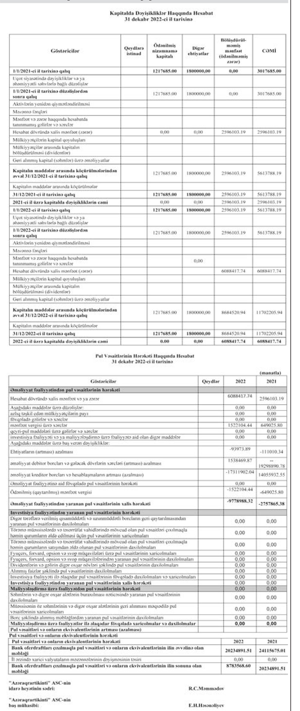 "Azəraqrartikinti" ASC 2022-ci ili 6 milyon 88 min manat xalis mənfəət ilə başa vurub. ASC 2021-ci ili 2 milyon 596 min manat xalis mənfəət ilə bağlamışdı. Beləliklə, "Azəraqrartikinti" şirkətinin xalis mənfəəti 2022-ci ildə 2021-ci illə müqayisədə 3 milyon 492 min manat və ya 134% (2,3 dəfə) artıb.