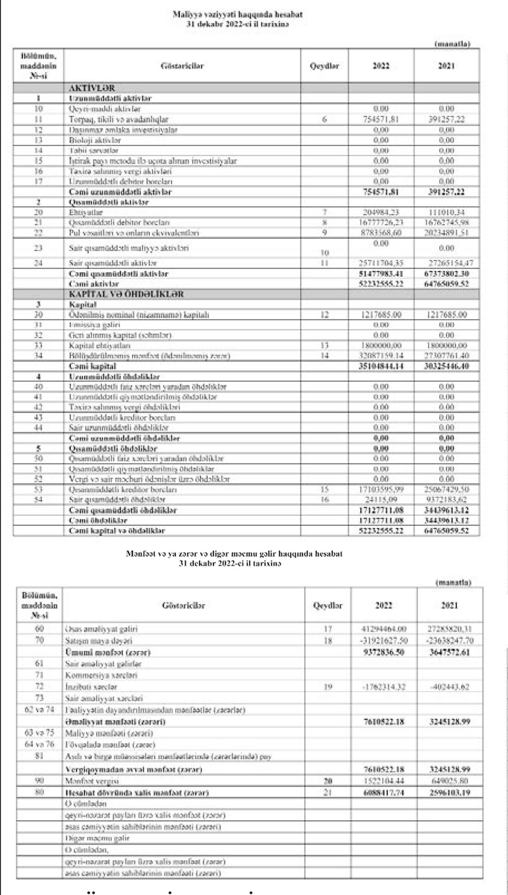 "Azəraqrartikinti" şirkətinin gəlirləri və xalis mənfəəti kəskin artıb