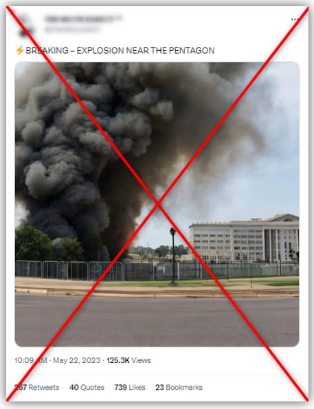 Pentaqonda partlayış olduğunu göstərən görüntü ötən gün əksər ABŞ xəbər agentlikləri və məşhur jurnalistlər tərəfindən paylaşılıb. Sosial mediada gündəmə gələn görüntünün bir çoxları tərəfindən real olduğu düşünüldükdən bir neçə saat sonra ABŞ hökumətindən rəsmi açıqlama verilib.
