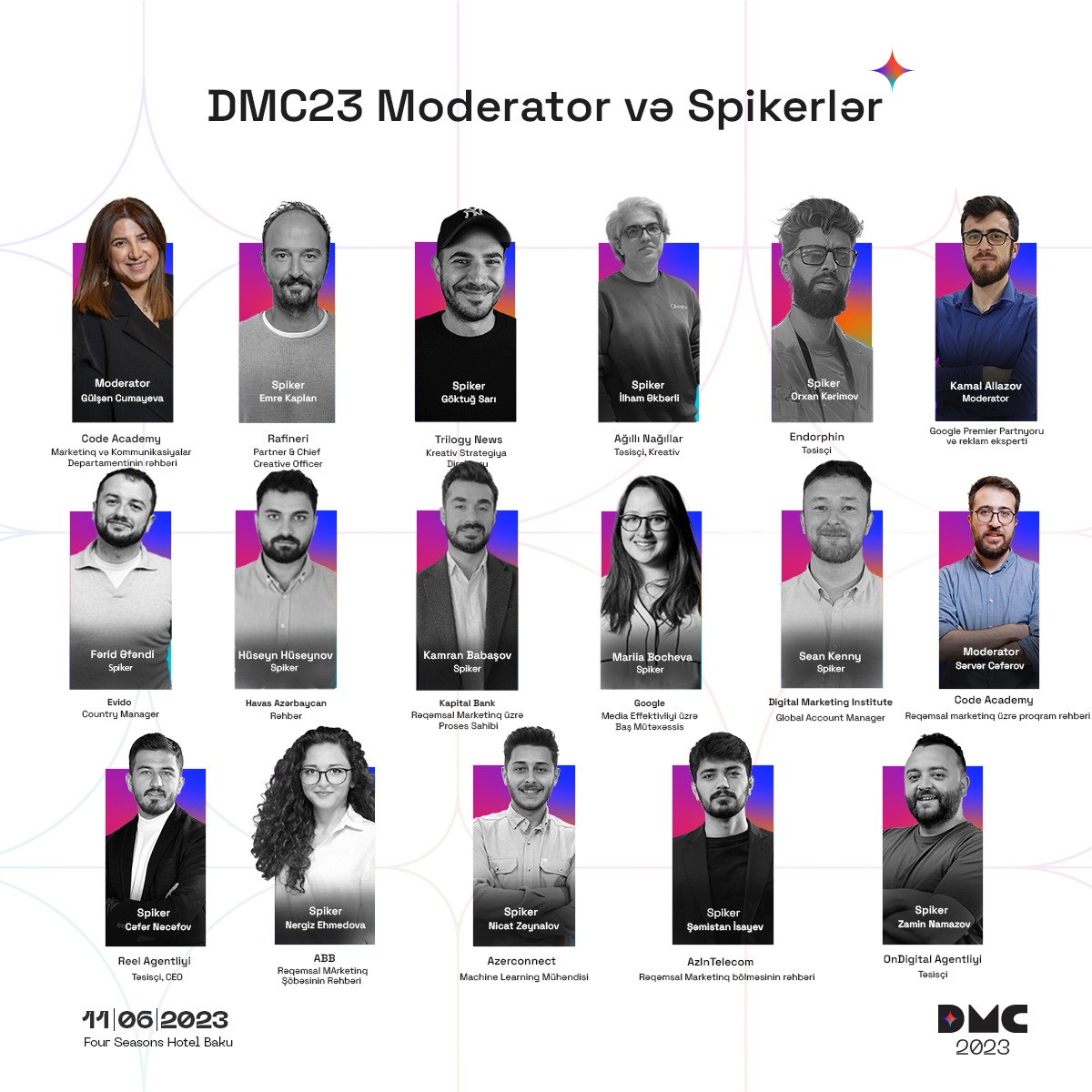 “Rəqəmsal minimalizm” konsept mesajı ilə ilə 11 iyun 2023-ci il tarixində “Four Seansons Hotel Baku”da 500 nəfərin iştirakı ilə baş tutacaq “Digital Marketing Conference” (DMC23) spikerləri məlum olub.