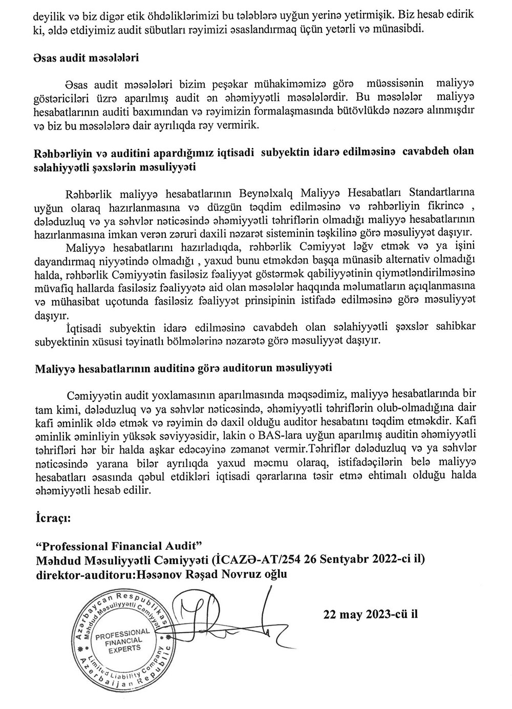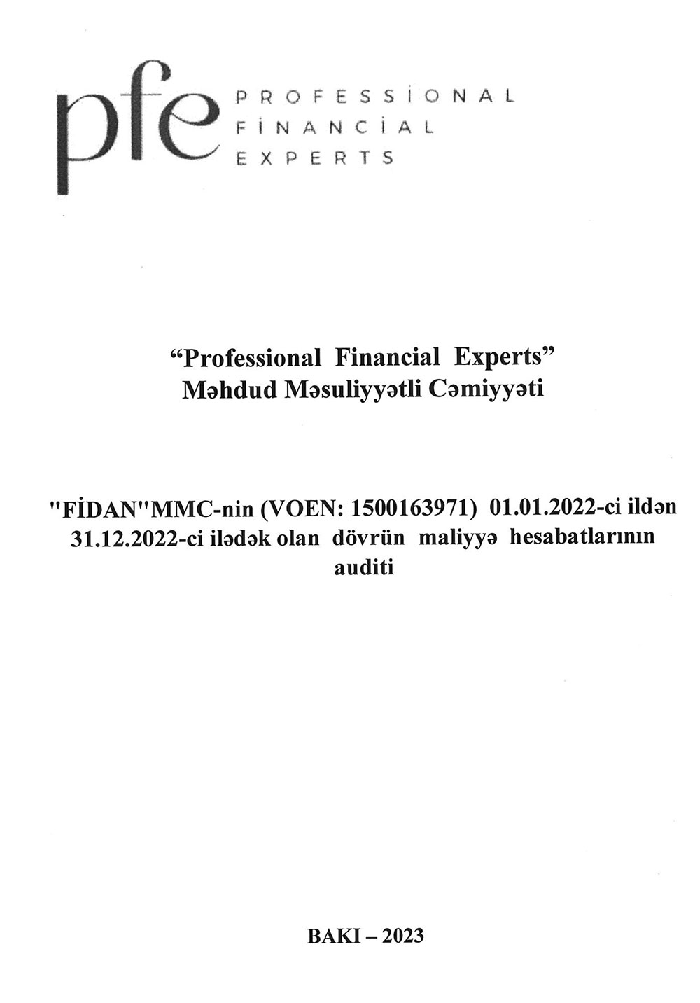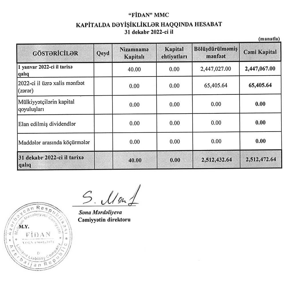 Sərnişindaşıma fəaliyyətilə məşğul olan "FİDAN" MMC-nin 31 dekabr 2022-ci il tarixində bitən il üzrə maliyyə hesabatları.