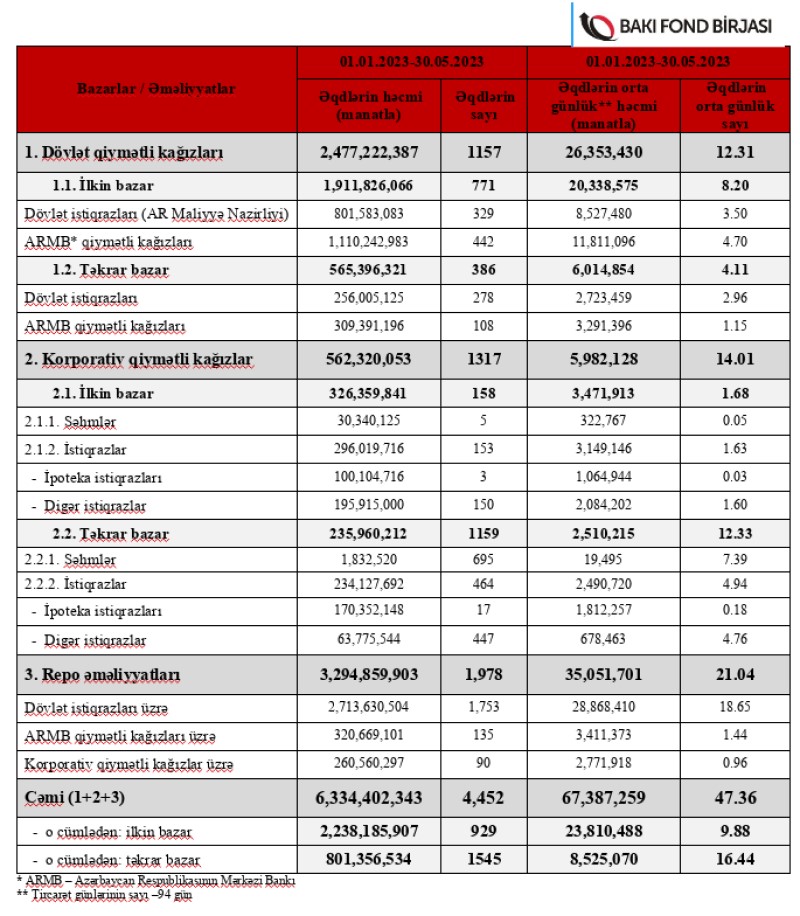 2023-cü ilin ilk 5 ayında Maliyyə Nazirliyi dövlət istiqrazlarının yerləşdirilməsi yolu ilə yerli kapital bazarından 801 milyon 583 min manat cəlb edib.