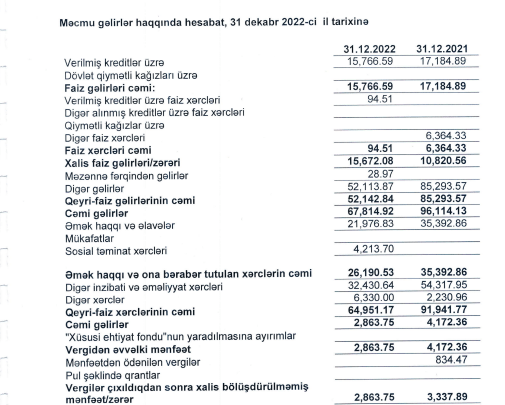 Həmçini BOKT ötən il 52 min 114 manat digər gəlirlər də əldə edib (2021-də digər gəlirləri 85 min 294 manat təşkil etmişdi).