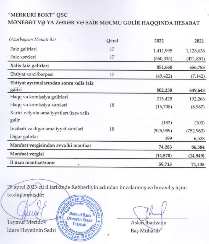 “Merkuri Bank Olmayan Kredit Təşkilatı” QSC 2022-ci ili 59,7 min manat xalis mənfəət ilə başa vurub. Təşkilat 2021-ci ili 71,4 min manat xalis mənfəət ilə bağlamışdı.
