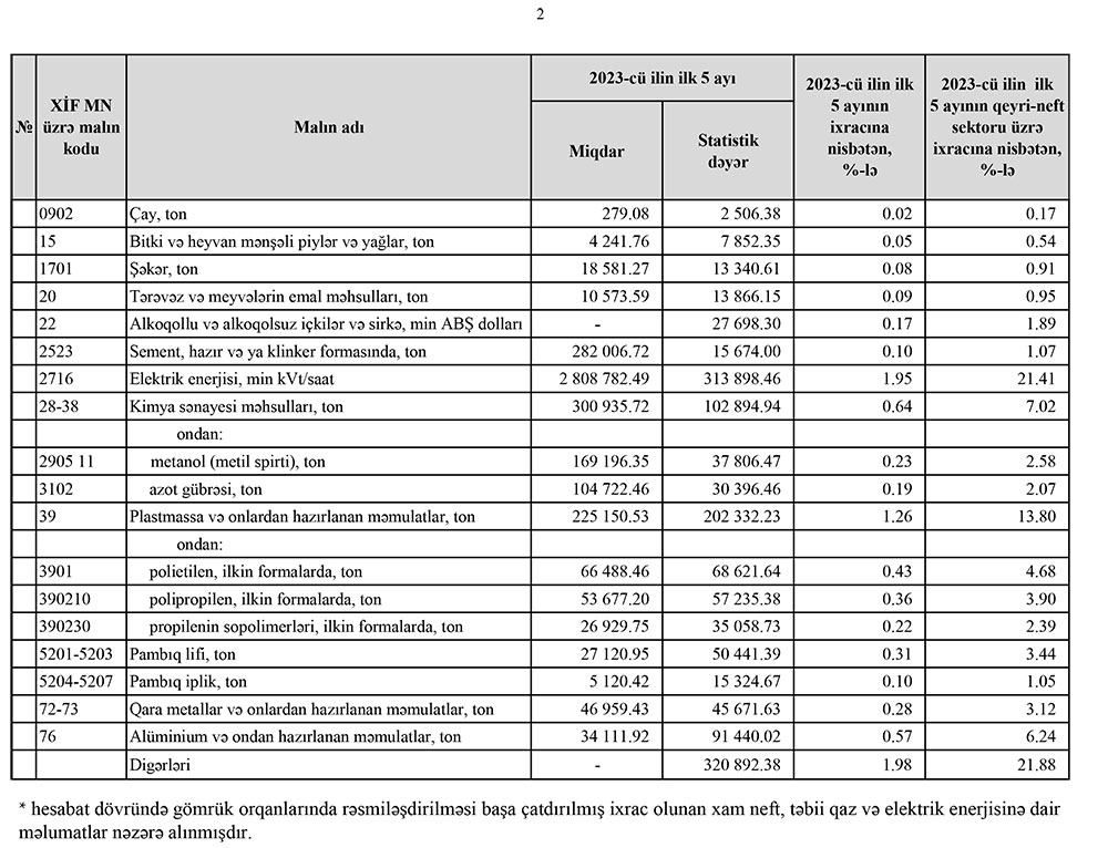 2023-cü ilin yanvar-may aylarında Azərbaycanın ən çox ixrac və idxal etdiyi mallar.