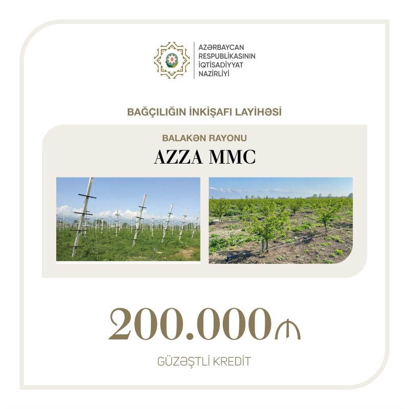 "Azza" MMC Balakəndə icra olunacaq bağçılığın inkişafı layihəsi üzrə Sahibkarlığın İnkişafı Fondundan güzəştli kredit əldə edib.