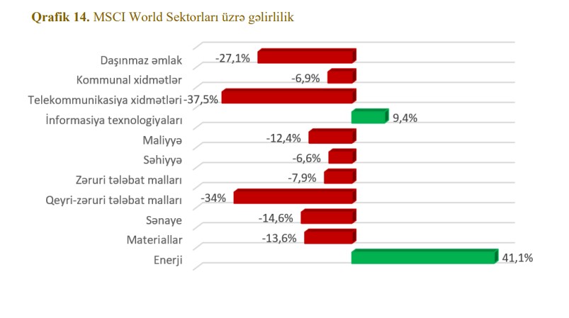 Vurğulanıb ki, il boyu iqtisadi artımın zəifləməsi gözləntiləri və davamlı yüksək inflyasiya bazar volatilliyinə təkan vermiş və bazar iştirakçıları üçün qeyri-müəyyənliklər yaratmışdır. Gözləntilər əsasən ilin sonunda iqtisadiyyatda tənəzzül, staqflyasiya və ya iqtisadi artımın zəifləməməsi şərtilə inflyasiyanın aşağı düşməsi olmaqla üç ssenaridən hansının hakim olacağı ilə bağlı olmuşdur.