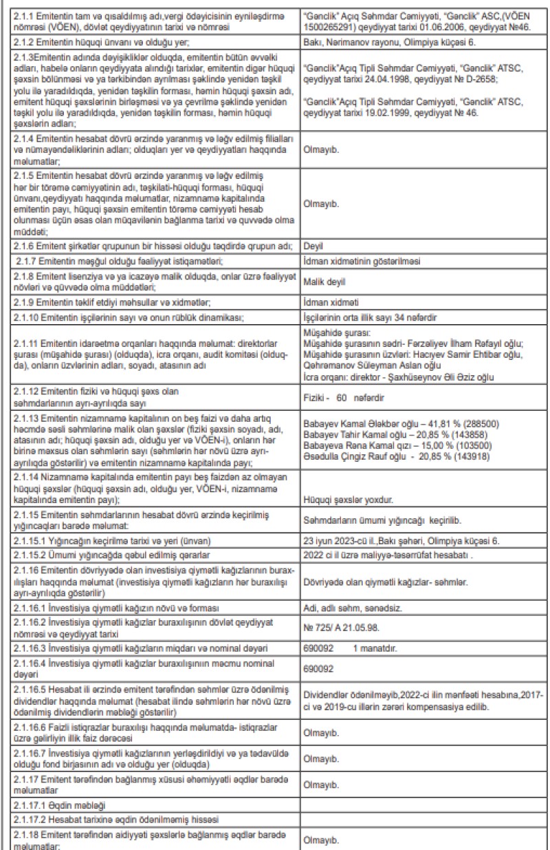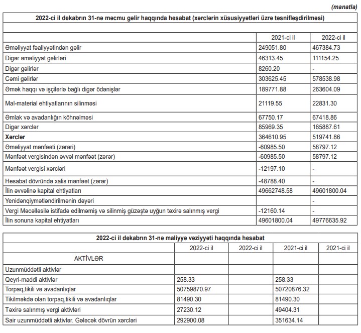 Xatırladaq ki, 2020-ci ildə "Gənclik" ASC-nin əməliyyat fəaliyyətindən gəlirləri 105 min 937 manat ikən, 2021-ci ildə 249 min 51 manata yüksəlmişdi.