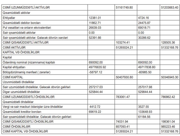Böyük hissəsi Babayevlərə məxsus olan 51 milyon manatlıq şirkət 59 min manat qazanc gətirib