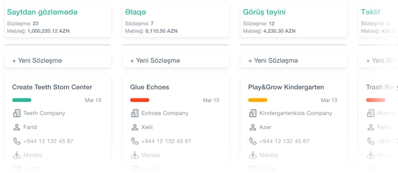 Cubics həllərində sorğular manual və ya avtomatik qaydada sözləşmələr kanbanına əlavə edilə bilər. İnteqrasiya sayəsində saytdan gələn sorğular avtomatik olaraq müvafiq kanbana əlavə edilir. Əgər sorğu zəng, email və ya digər əlaqə vasitəsi ilə daxil olubsa, onu manual olaraq da yaratmaq mümkündür.