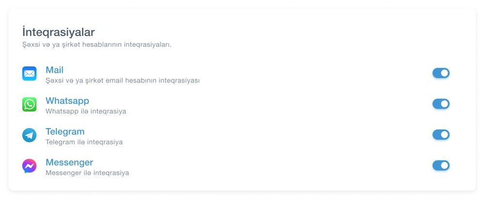 Cubics BMS sistemi digər platformalar ilə rahat inteqrasiya edildiyi üçün şirkətə gələn Email, WhatsApp, Telegram, Messenger və s. bütün növ yazılı müraciətləri tək pəncərədən idarə etmək mümkündür.