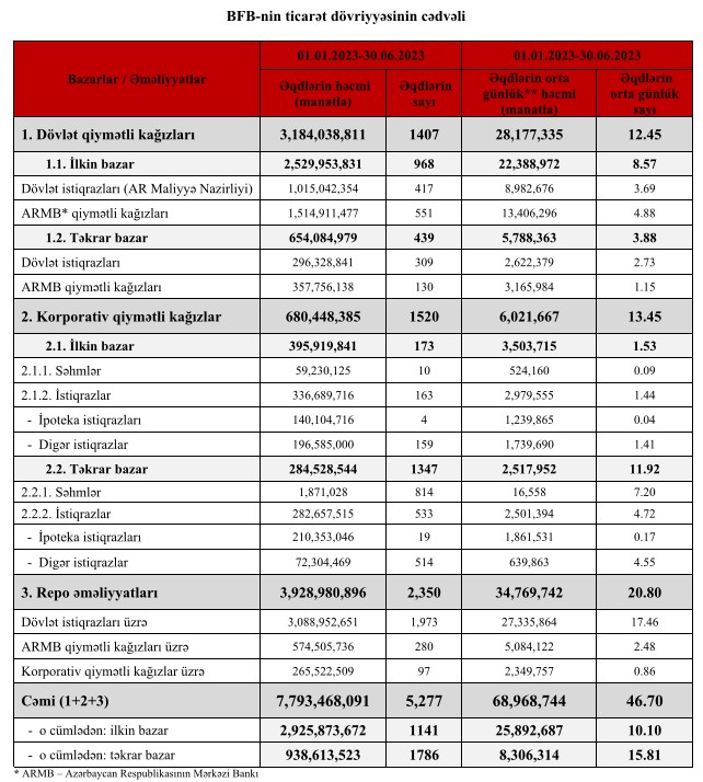 Maliyyə Nazirliyi 2023-cü ilin ilk yarısında (yanvar-iyun) dövlət istiqrazlarının yerləşdirilməsi yolu ilə 1 milyard 15 milyon 42 min manat cəlb edib.