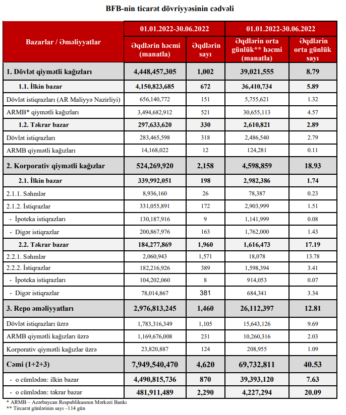 Qeyd edək ki, Maliyyə Nazirliyi 2022-ci ilin ilk yarısında dövlət istiqrazlarının yerləşdirilməsi yolu ilə 656 milyon 141 min manat cəlb etmişdi. Beləliklə, bu il dövlət istiqrazlarının yerləşdirilməsi yolu ilə cəlb edilən vəsait 358 milyon 902 min manat və ya 54,7% artıb.