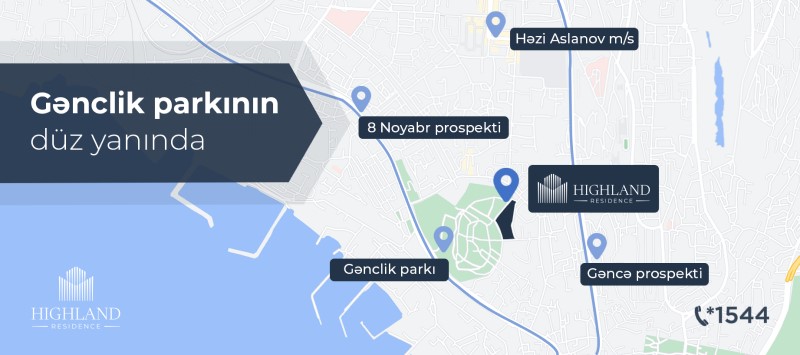Bakı Buxtasına qapanmaz mənzərəsi olan və “Gənclik Parkı”nın düz yanında yerləşən “Higland Residence”də mənzillərin satışı başladı. Burda siz hər səhər Xəzər dənizinin möhtəşəm mənzərəsindən zövq ala biləcəksiz. Bu dəniz mənzərəli mənzilləri çox sərfəli şərtlərlə 20 ilədək ipoteka krediti ilə əldə etmək mümkündür.