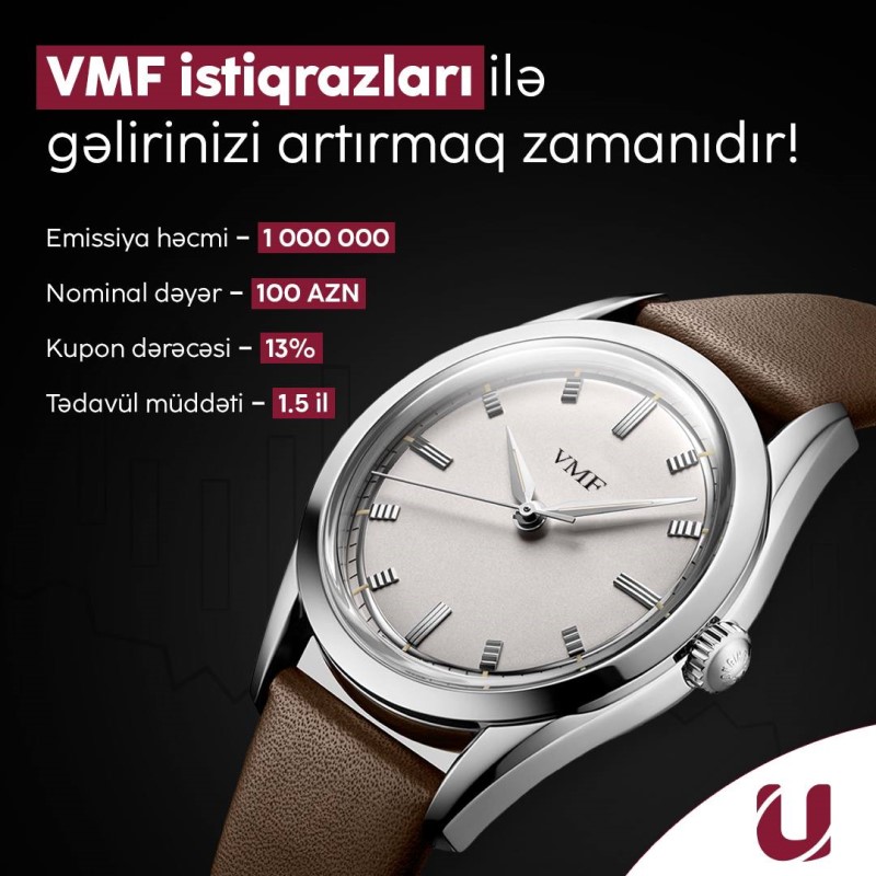 (®) 19 iyul 2023-cü il tarixində VMF MMC-nin tədavül müddəti 18 ay, nominal dəyəri 100 manat, illik faiz dərəcəsi 13%, faiz ödəniş dövrü isə hər 3 aydan bir təşkil edən, 1 milyon manat həcmində, faizli, təmin edilməmiş sənədsiz, adlı istiqrazlarının yerləşdirilməsi baş tutacaq.