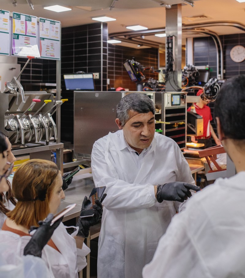Fürsətdən istifadə edib, Tbilisi pr. 1056 ünvanında yerləşən McDonald’s restoranının mətbəxində də olduq. Keyfiyyətə Nəzarət şöbəsinin rəhbəri Anar bəy mətbəxdə yeməklərin hansı şəraitdə hazırlanması ilə bizi tanış etdi. Əminliklə deyə bilərəm ki, mətbəxdə hər şey təmiz, steril şəraitdədir. Bütün ərzaqlar öz temperaturuna uyğun saxlanılır və bu işə rəqəmsal qida təhlükəsizliyi proqramı ilə nəzarət edilir. Mətbəxdə istifadə olunan kənd təsərrüfatı məhsulları yerli istehsaldır. Çox zaman müştərilər yeməklərdə ət və yağdan narahat olurlar. Elə isə gəlin mifləri dağıdaq. Burada hər məhsul öz yağ vannasında bişir və bir-birinə qarışmır. Yağların turşuluq dərəcəsi xüsusi lakmus kağızları ilə yoxlanılır, göstərici 1%-dən yuxarı olduqda isə yağ dərhal yenilənir. Həmçinin, onların vizual görünüşünə - rəngi və ətrinə də gündəlik nəzarət olunur. Məhsullar üçün istifadə olunan bitki yağı yüksək keyfiyyətli günəbaxan yağıdır.