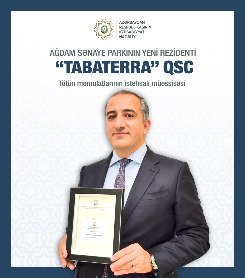 “Tabaterra” QSC-yə Ağdam Sənaye Parkının rezidenti statusu verilib və rezidentlərin sayı 17-yə çatıb.