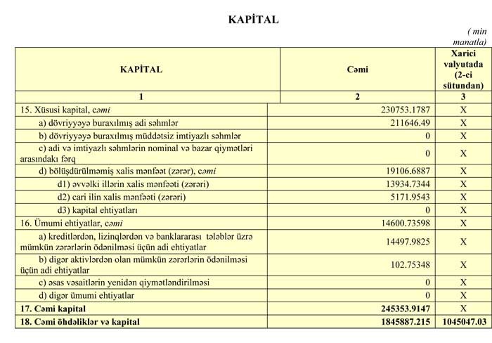 Müqayisə olunan dövrdə Bankın müştərilərə verdiyi kreditlər 1 milyard 274 milyon 525 min manatdan 1 milyard 338 milyon 869 min manata, depozitlər isə 1 milyard 98 milyon 899 min manatdan 1 milyard 230 milyon 598 min manata qalxıb.