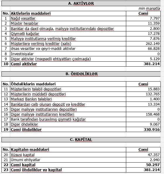 30 İyun 2023-cü il tarixində "Bank BTB" 54 milyon 56 min manat məcmu kapitala malik olub.