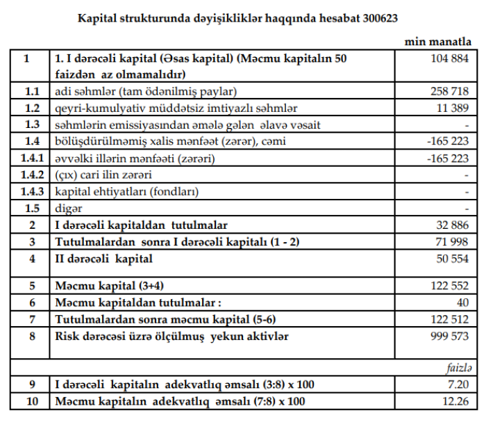 30 İyun 2023-cü il tarixində "AccessBank" 122 milyon 512 məcmu kapitala malik olub.