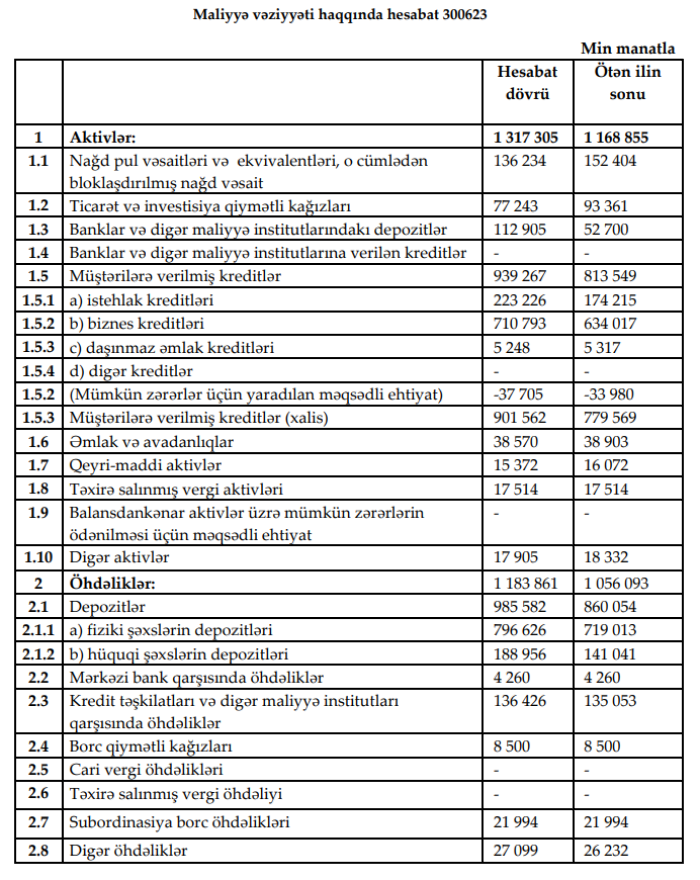 CƏMİ AKTİVLƏRİ 1,3 MİLYARD MANATI KEÇİB