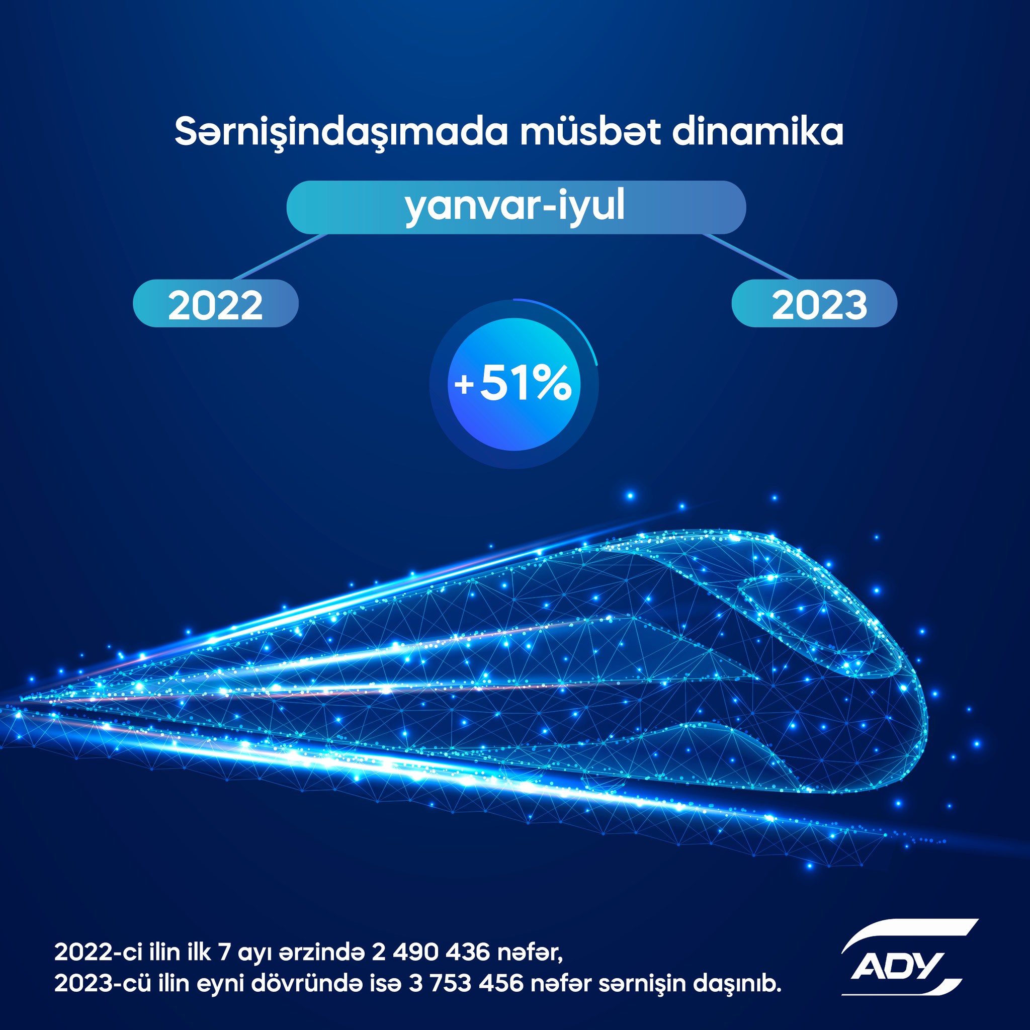 Bu ilin ilk 7 ayında dəmir yolları ilə sərnişindaşımada 51% artım olub. Yanvar-iyul dövründə qatarlar ilə 3 milyon 753 min 456 insan səyahət edib.