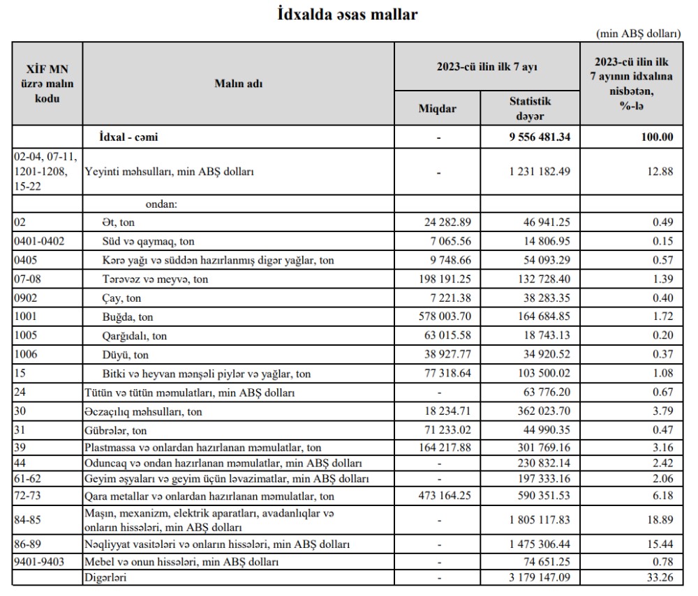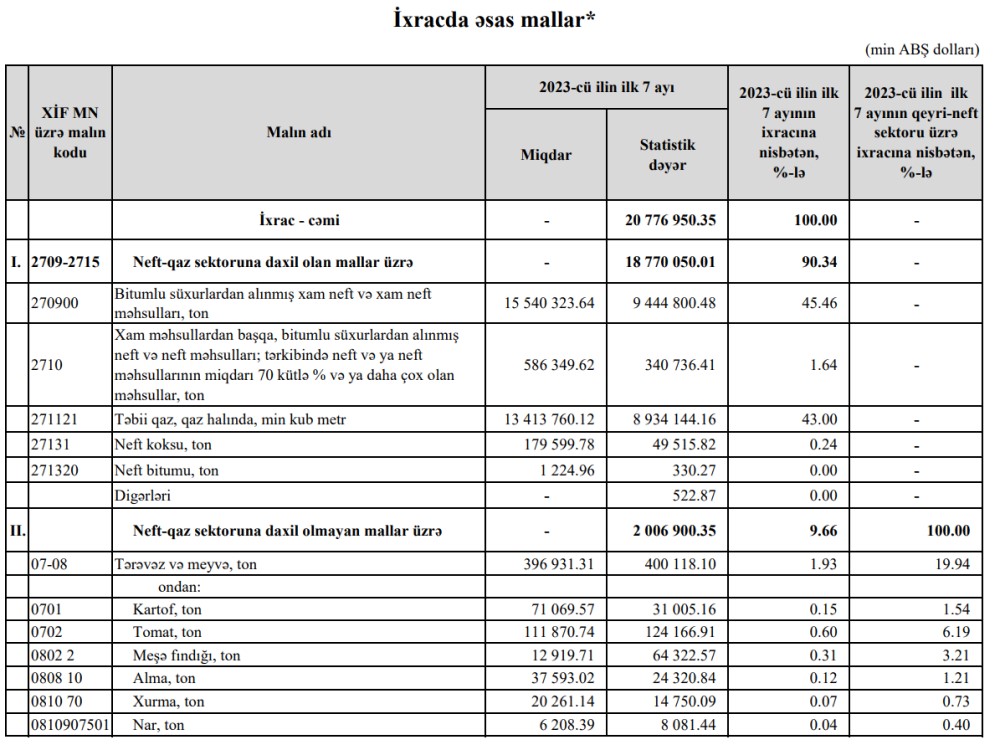 2023-cü ilin yanvar-iyul aylarında (7 ayda) Azərbaycanın ən çox ixrac və idxal etdiyi mallar.