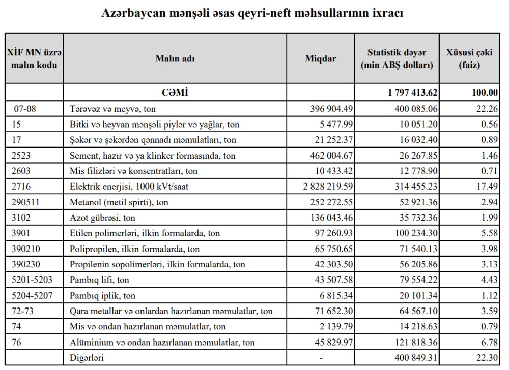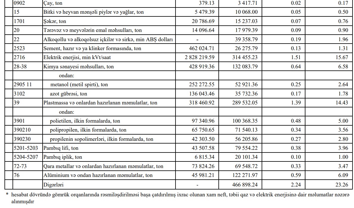 Azərbaycanın ən çox ixrac və idxal etdiyi mallar - YENİ SİYAHI