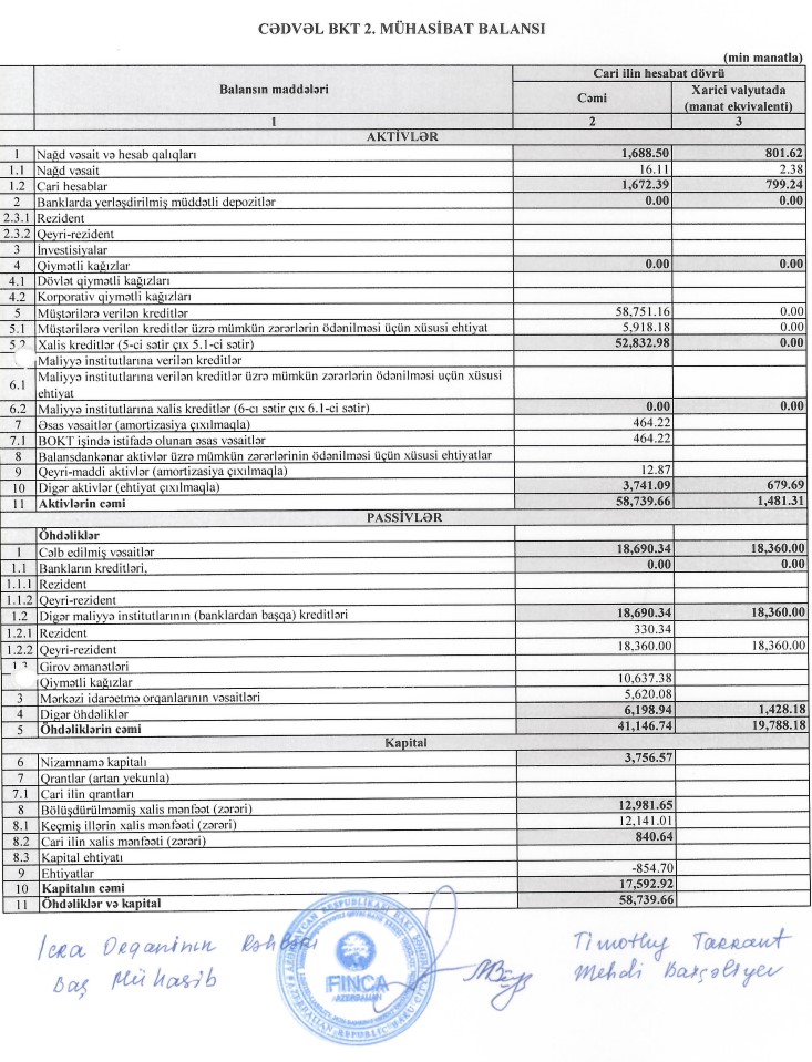Marja.az Təşkilatın yarımillik hesabatına istinadən xəbər verir ki, 2023-cü ilin birinci yarısında "Finca Azerbaijan"ın faiz gəlirləri 8 milyon 52 min manat, qeyri-faiz gəlirləri 222 min manat, əməliyyat xərcləri çıxıldıqdan sonra əməliyyat mənfəəti 1 milyon 4 min manat təşkil edib. Təşkilat 118 min manat mənfəət vergisi ödəyib.