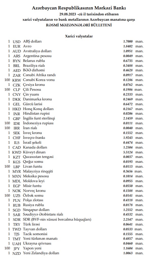 Dolların bazar ertəsi üçün rəsmi məzənnəsi müəyyən olunub