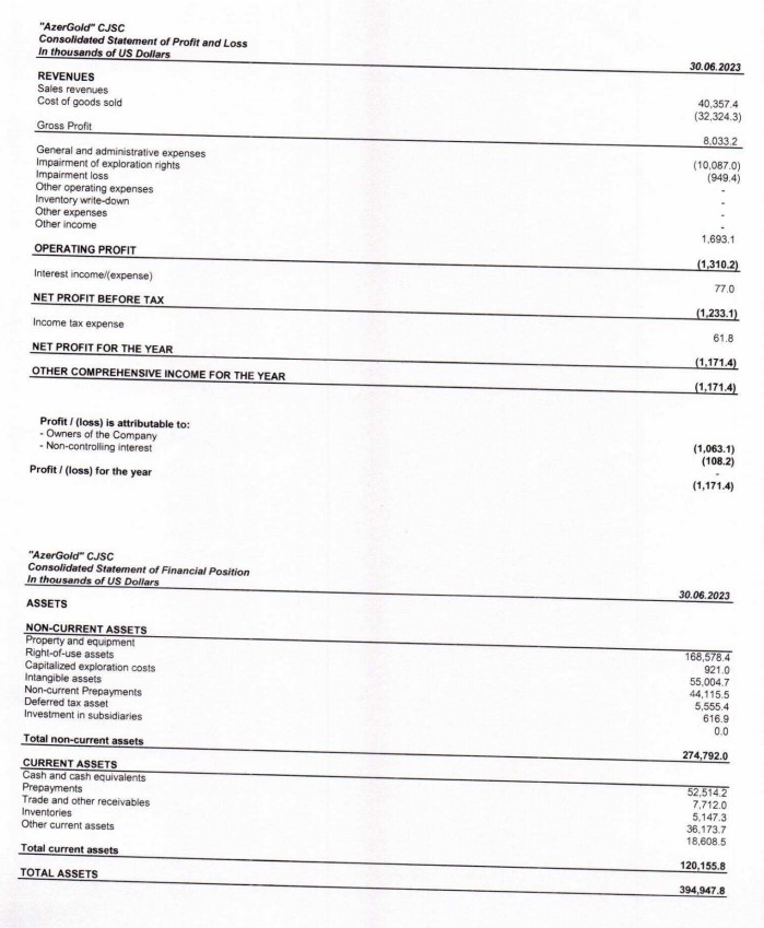 "AzerGold" QSC 2023-cü ilin birinci yarısını 1 milyon 171 min dollar (cari məzənnə ilə 1 milyon 991 min maant ) xalis zərər ilə başa vurub.