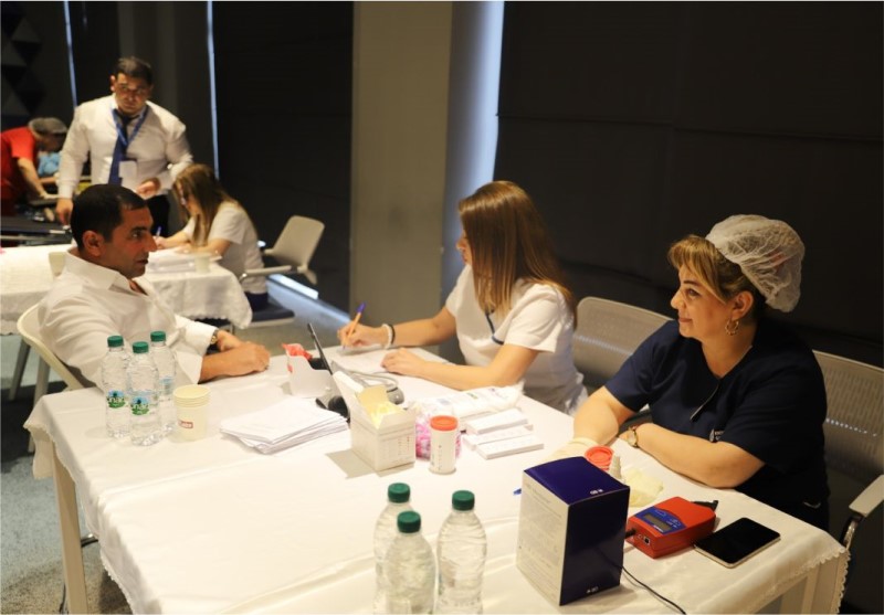 Mərkəzi Qan Bankı tərəfindən ezam olunmuş xüsusi tibbi briqadanın həkim-hemotoloqları tərəfindən hər bir donorun sağlamlığı öncədən müəyyən olunub. Onlardan qan analizi götürülərək sağlam olub-olmamaları müəyyənləşdirilib və səhhətində problemi olmayan donorlardan qan götürülüb.